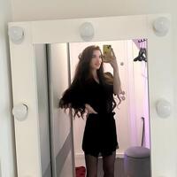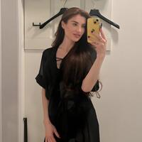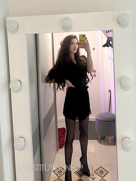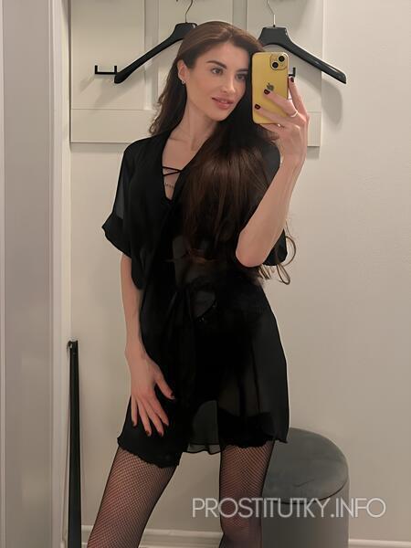 Я – твой личный квест на чувственные открытия: длинные волны каштановых волос ласкают талию, чёрные ремешки белья подчёркивают каждую изгибистую деталь, а взгляд с лёгкой улыбкой говорит, что я уверенно держу ритм игры.